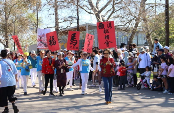 过去的周六(7日),南加州橙县大公园(Great Park)为庆祝马年来临,首次举办了黄历新年大游行。当日天气晴朗,上千人站在游客服务中心和大气球前的大道两旁,兴高采烈地观看亚裔团体的队伍一一走过。