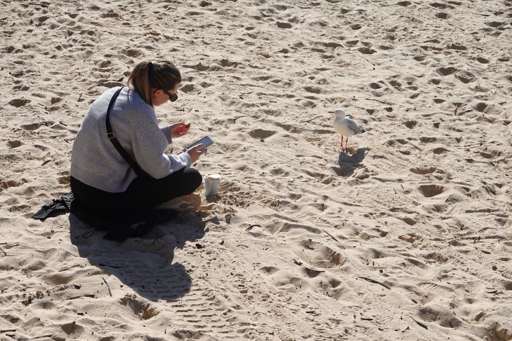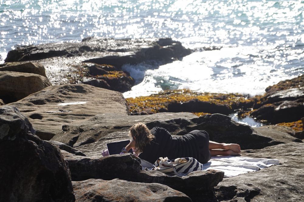 在礁石上铺一薄毯,享受冬日暖阳,面朝大海,盯着Ipad