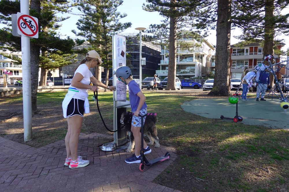 澳大利亚和新西兰的自来水可以直接饮用,饮水设施设计得很人性化,下面还配了一个小碗,方便给狗接水。
