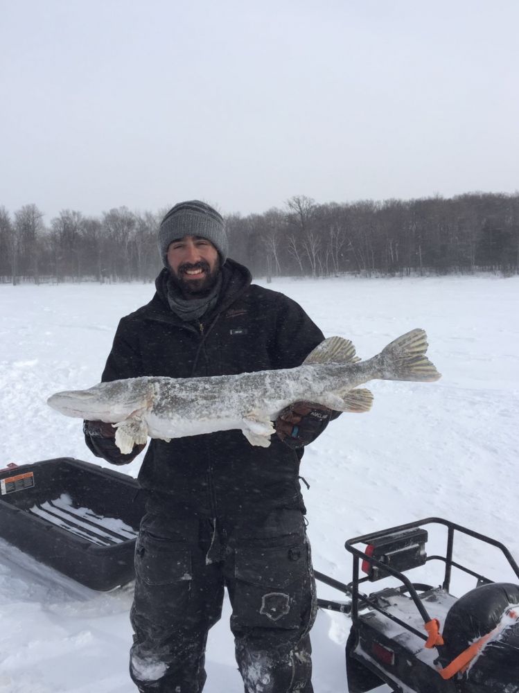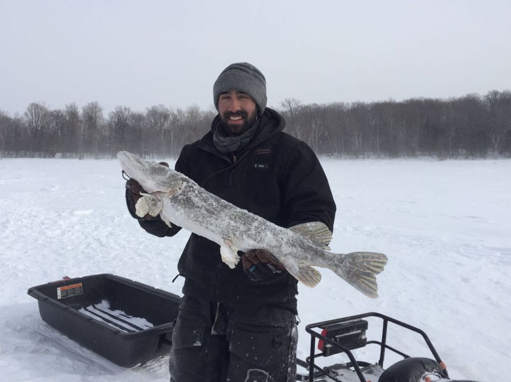 昨天河湾里除了玩儿滑板儿风帆的,还有冰钓小扮。开了雪摩托,带了挡风帐篷,钻了冰洞, 开钓。好奇地跑过去看看是不是真能钓上鱼来。小扮兴高采烈地展示他的斩获,本来只想拍鱼的,他摆pose, 恭敬不如从命。