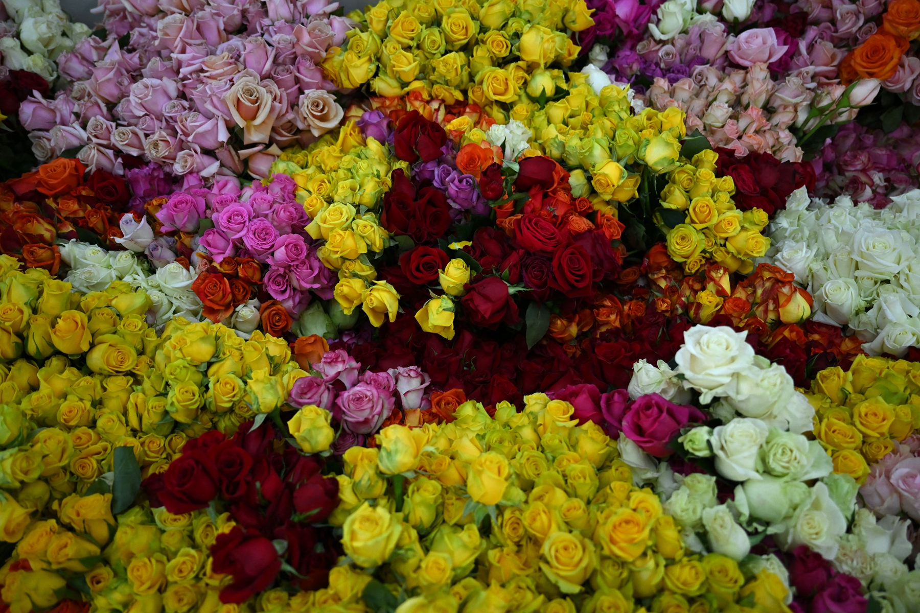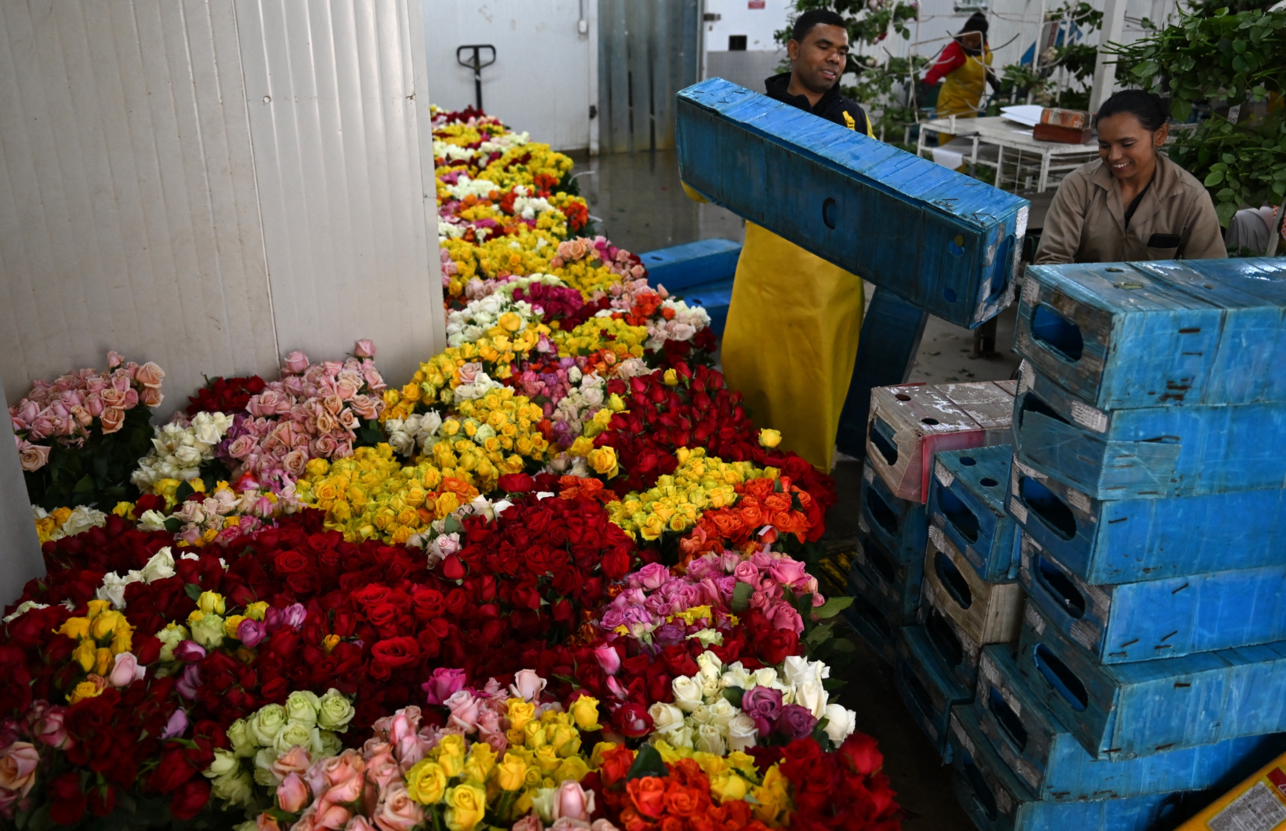 2月14日传统的西方情人节即将到来,许多人会以鲜花表达爱意。为了满足一年中最大的鲜花市场需求,南美洲国家哥伦比亚的花商花农正紧锣密鼓地包装鲜花,将其空运至世界各地。