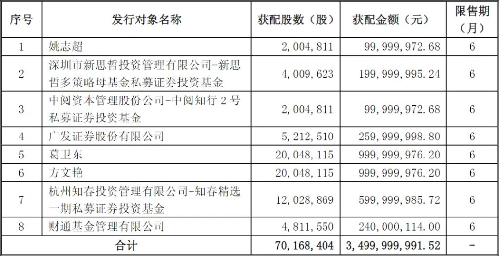 江淮汽车发布的定增公告显示,葛卫东和章建平的妻子方文艳同时出现在获配名单上,均获配10亿元。