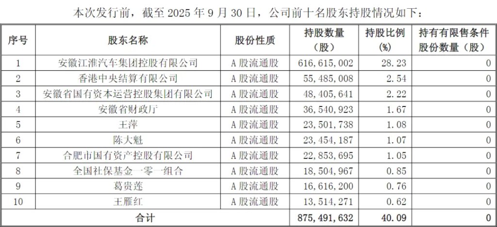 需要说明的是,葛卫东另一名关联人葛贵莲,截至2025年三季度末,持有江淮汽车1661.62万股,位居该公司第九大股东。