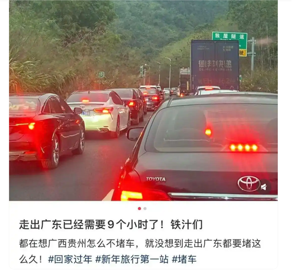 社交平台上,不少已自驾返乡的网友表示堵在了高速路上。网友“大小王”表示,2月8日从深圳启程,准备回四川过年,出发8个小时还居然没有走出广东。他透露,“昨天早上9点出发的,深圳到肇庆走了8个多小时,晚上我们在贵港休息。”