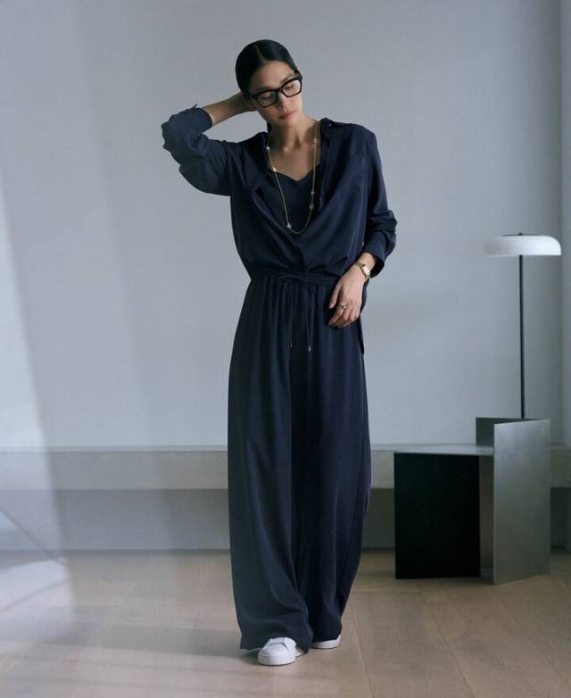 采用能温柔包裹身体的丝绸材质制成的衬衫、吊带背心和长裤三件套。在家度过休闲时光时,舒适好穿的衣橱单品是必不可少的存在。得益于垂坠感优美的丝绸,自然营造出显腿长的廓形。