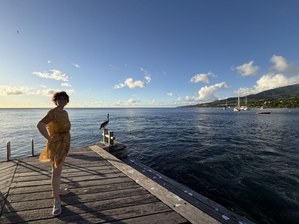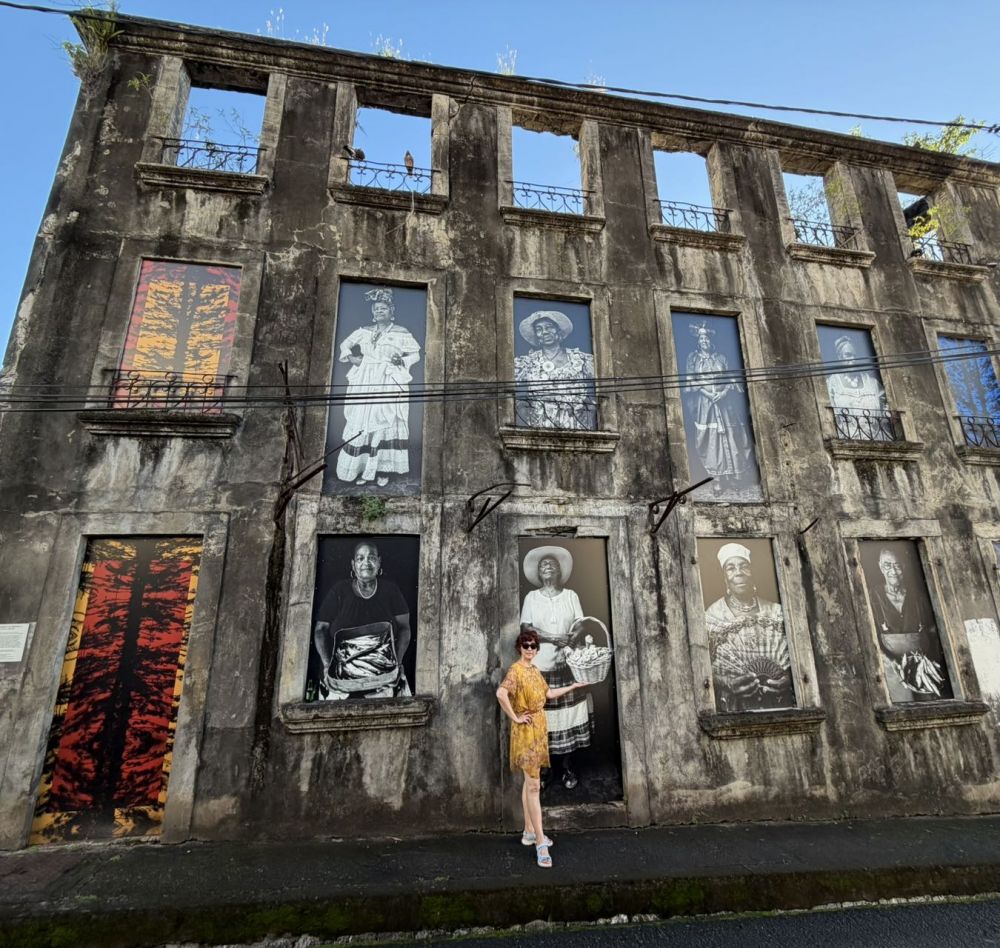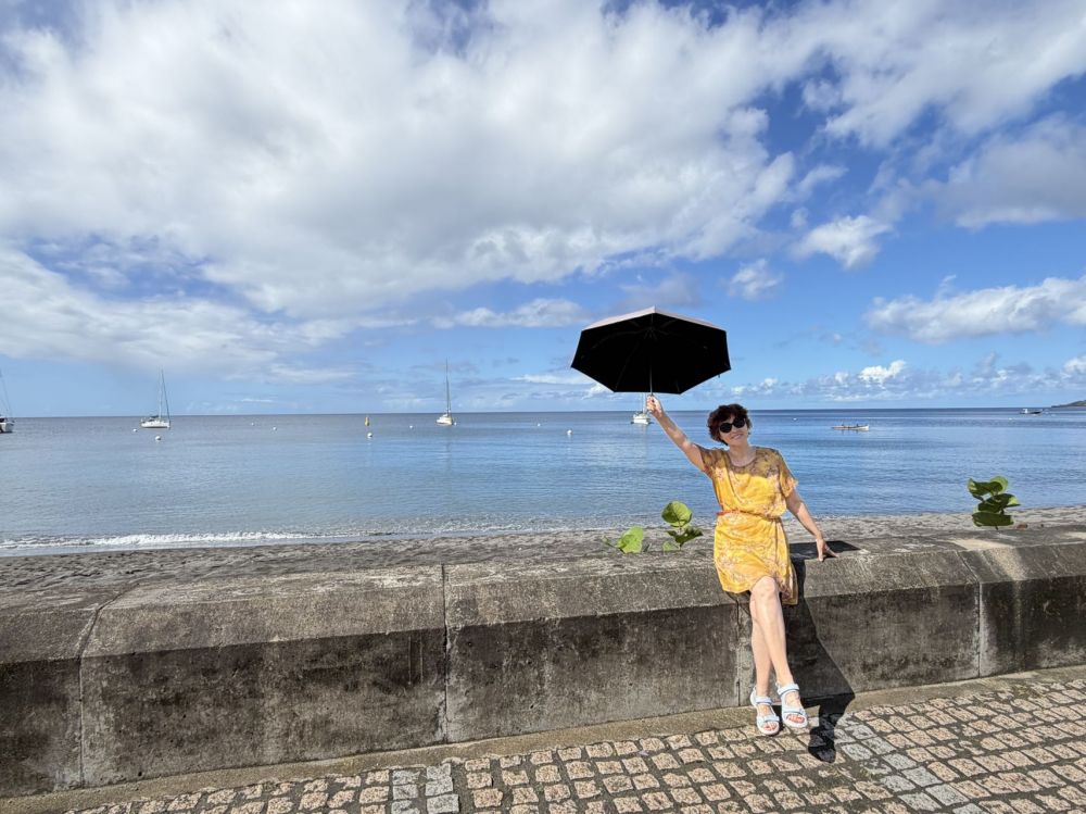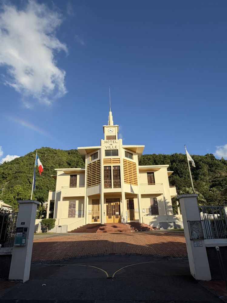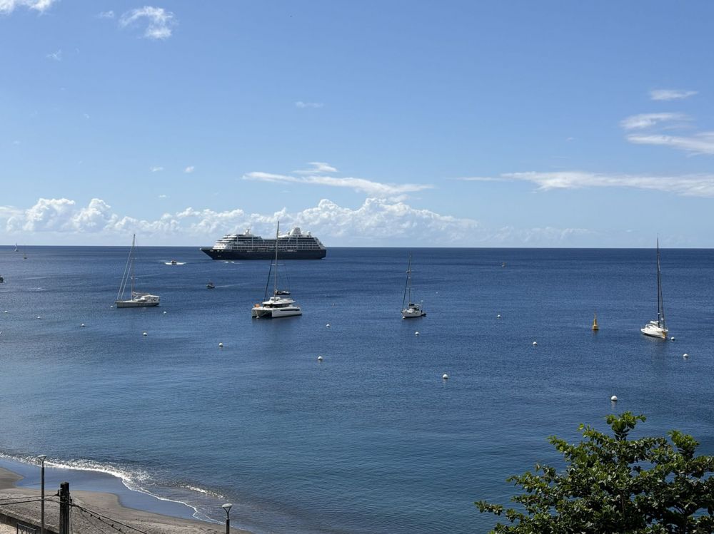 St. Pierre不是殖民的属地,而是法国一个省的副省会,是法国领土的一部分。这里自1902年火山爆发之后,再也没能恢复到往日的繁荣,现在只有不到四千的居民。岛上旅游促进会的姑娘们十分友好,为游客提供免费的Wi-Fi,速度还挺快,让我们继几天“失联”之后能开启视频,也让家人们隔屏感受了一下热带风光。