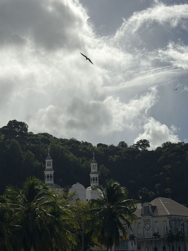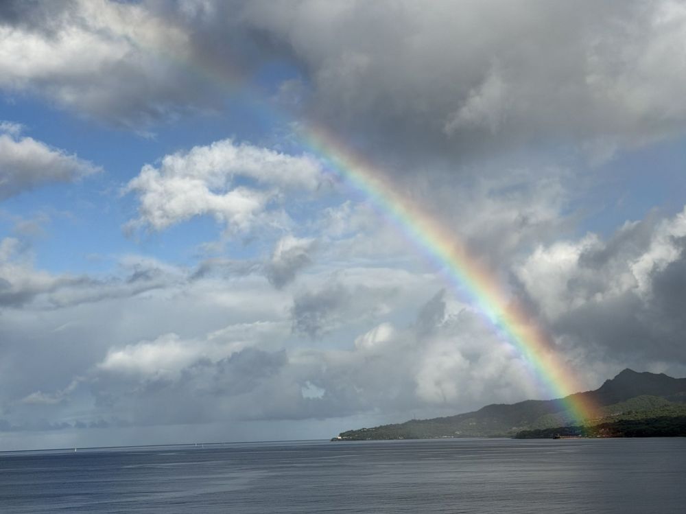 我们在St. Pierre的这个白天,碰到了加勒比地区冬季的一种典型天气:明明还是晴朗的天空,忽然地、时不时地就下一阵子瞬间的急雨,然后就是漂亮的彩虹!