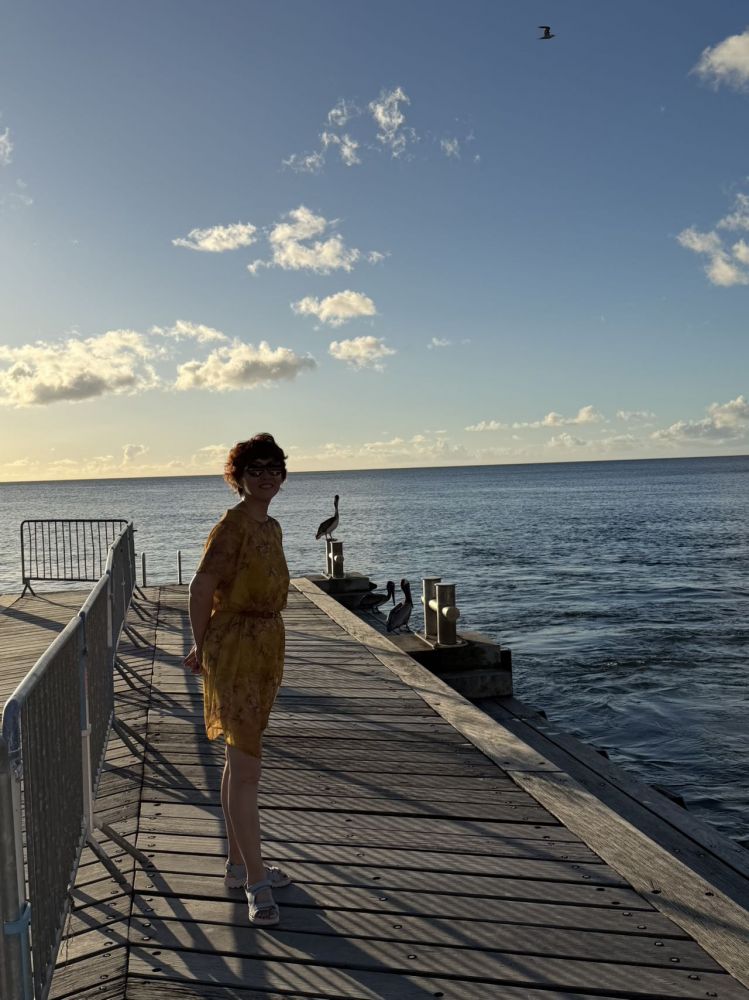 还有海边这不怕人的海鸟,就在我们上下Tender boat的码头上的木板桥边。它这是摆好了姿势,等着游客来合影的吧?!咱当然不能辜负这灵鸟的邀约,嘻嘻!
