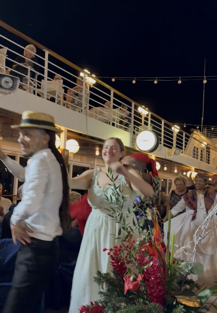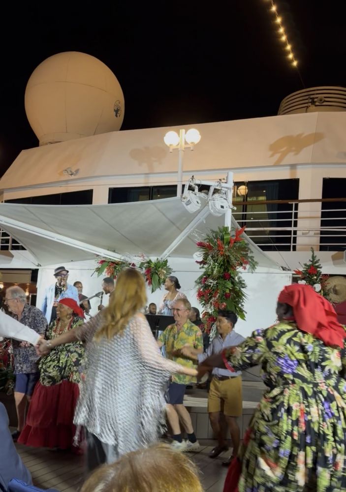 这一天游轮还延迟离港时间,特别安排岛国的歌舞团上船来表演,给游客们带来了热情洋溢的极具加勒比特色的歌舞。演出最后还拉着很多游客一起参与到舞蹈的行列之中…