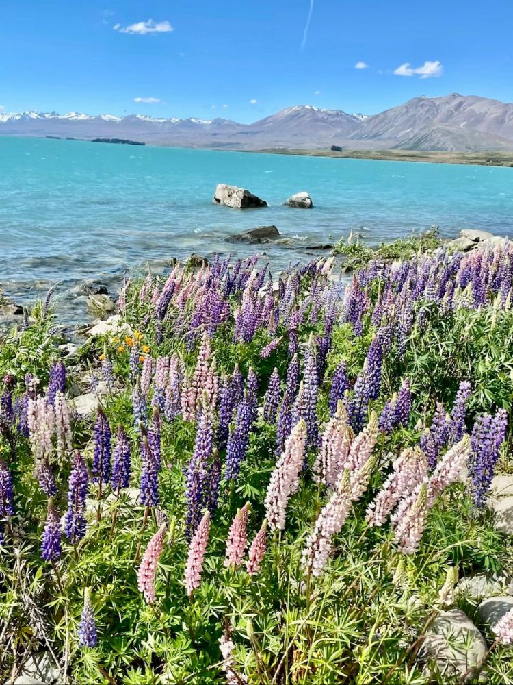 走近蒂卡波湖Lake Tekapo,就见鲁冰花。11月中旬后,湖滨到处鲁冰花灿烂绚丽。