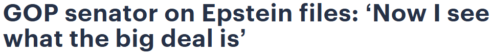 共和党籍参议员辛西娅·卢米斯(Cynthia Lummis)周一表示,在审阅爱泼斯坦案未删节的文件后,她现在明白了“事情的严重性”。