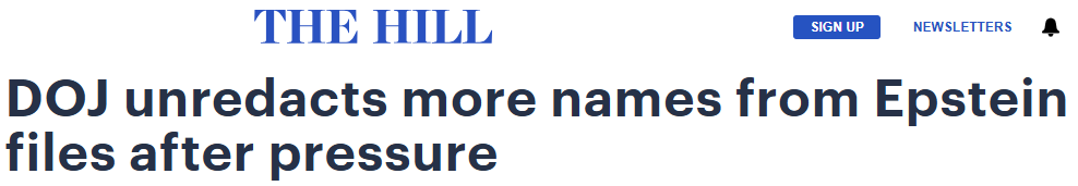 司法部本周在国会议员施压后取消了与爱泼斯坦案相关文件中多处姓名的涂黑处理。