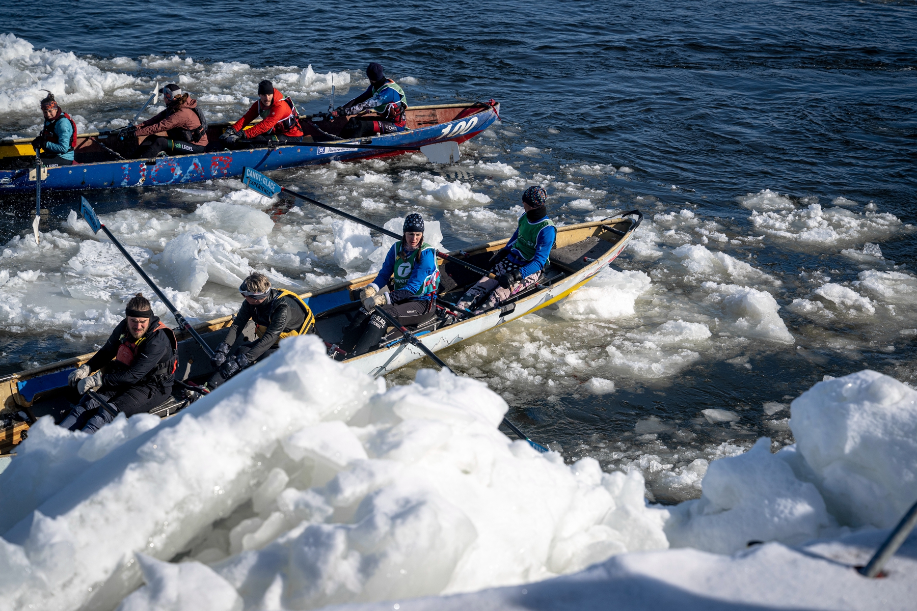 2026年2月8日,加拿大魁北克冬季嘉年华期间,赛艇运动员参加在圣劳伦斯河(Saint Lawrence River)上举行的冰上独木舟大赛。(Andrej Ivanov/Getty Images)2026年2月8日,加拿大魁北克冬季嘉年华期间,赛艇运动员参加在圣劳伦斯河(Saint Lawrence River)上举行的冰上独木舟大赛。(Andrej Ivanov/Getty Images)