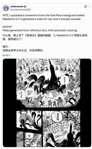 还有这位网友,只是上传了一张漫画截图,Seedance 2.0直接给他整出了一整段剧情视频,别太amazing啊我说!!