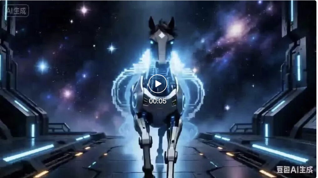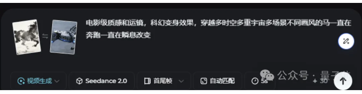 咱再来玩个首尾帧玩法,马年到了正好应应景,我上传了两张画风完全不同的马儿奔跑图片,让这匹马在同一个画面里完成一次大变身:
