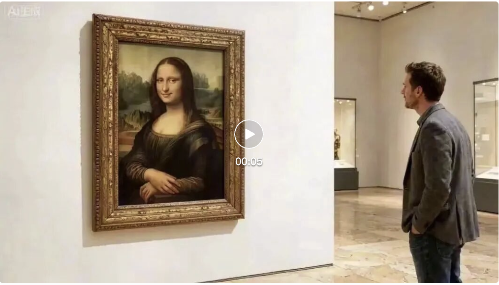 你还真别说,蒙娜丽莎这偷喝可乐时鬼鬼祟祟的小眼神和动作还真挺到位,说话时面部一致性也稳住了,手扶画框的动作没有出戏,过关过关!!