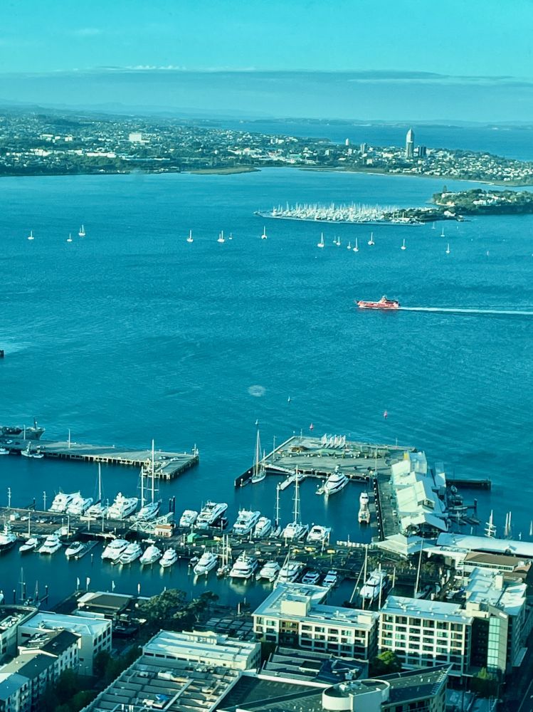 登上天空塔顶,俯瞰奥克兰码头,忍不住靶叹:不愧为“帆之都”! 有理由怀疑奥克兰的船比人还多。
