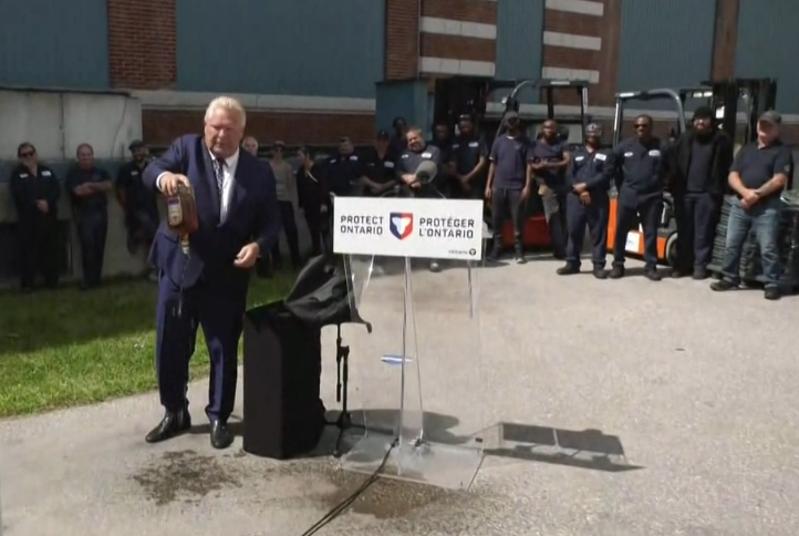 去年9月,福特在新闻发布会上将整瓶Crown Royal威士忌倒在地上,以抗议Diageo关闭Amherstburg工厂的决定。