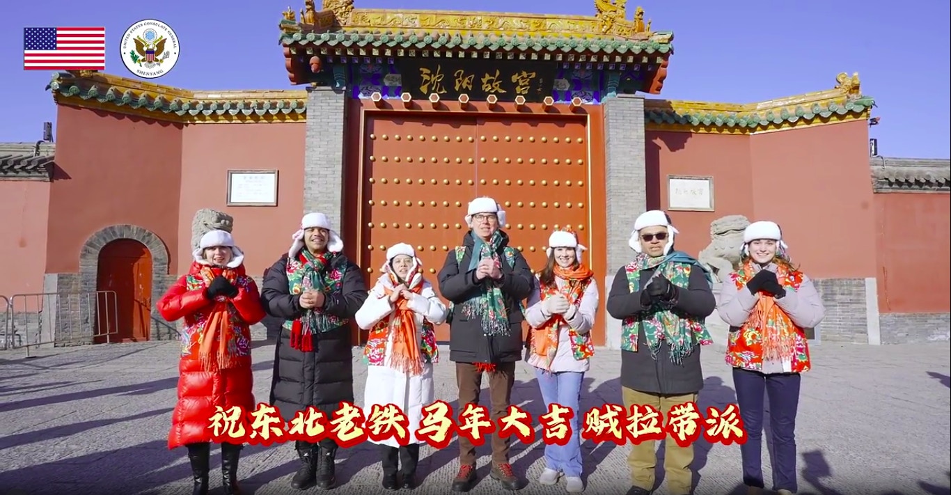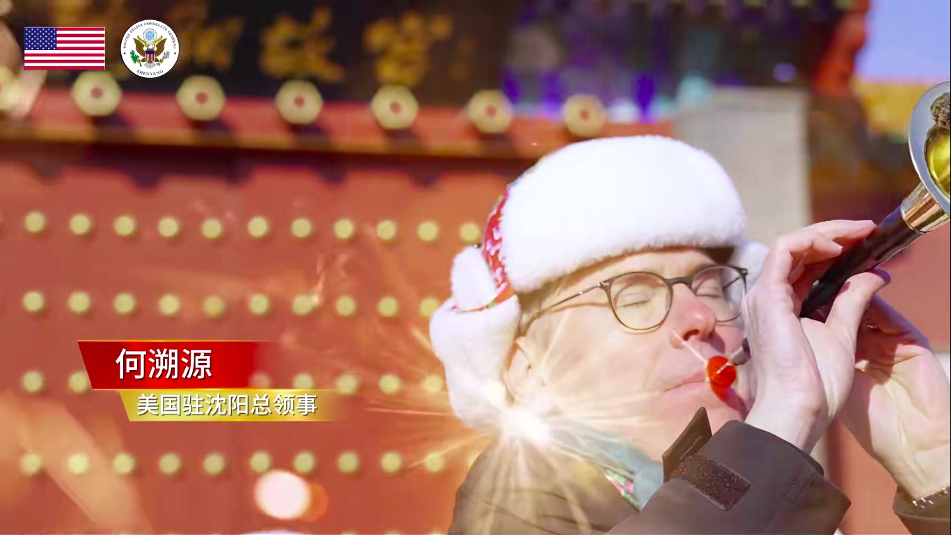 文章称,美国驻沈阳总领事何溯源在这个冬天很忙,不仅解锁了东北秧歌的基本舞步,还带着美国同事们一起挑战了火遍东北的神曲《大东北我的家乡》。