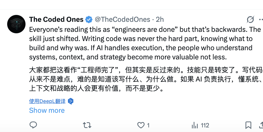 有分析认为,技能只是转变了,懂系统、上下文和战略的人会更有价值。