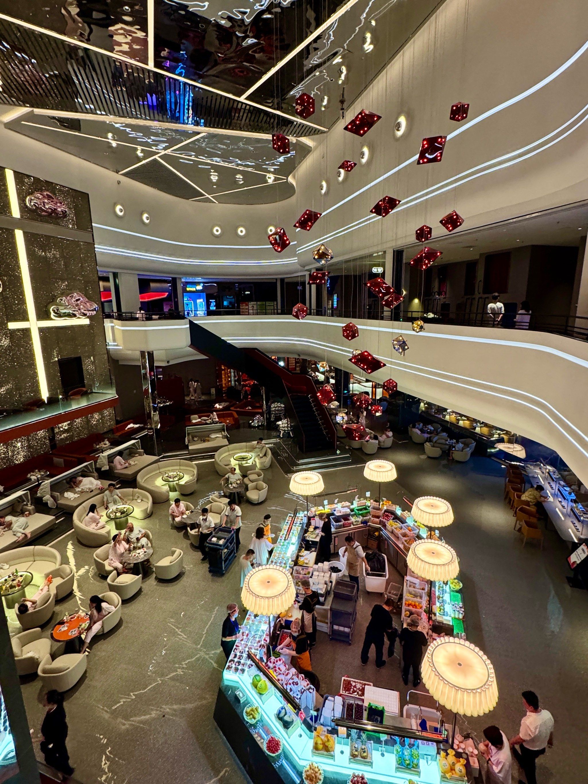 走进任意一家水会汤泉,你会发现这里早已不是传统澡堂的模样。拼豆手工区、PS5游戏机、电影院、KTV、桌游室……各种娱乐设施一应俱全。在广州,有洗浴中心的自助餐甚至卷到了“帝王蟹、鱼子酱、鹅肝、生蚝”的程度。