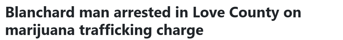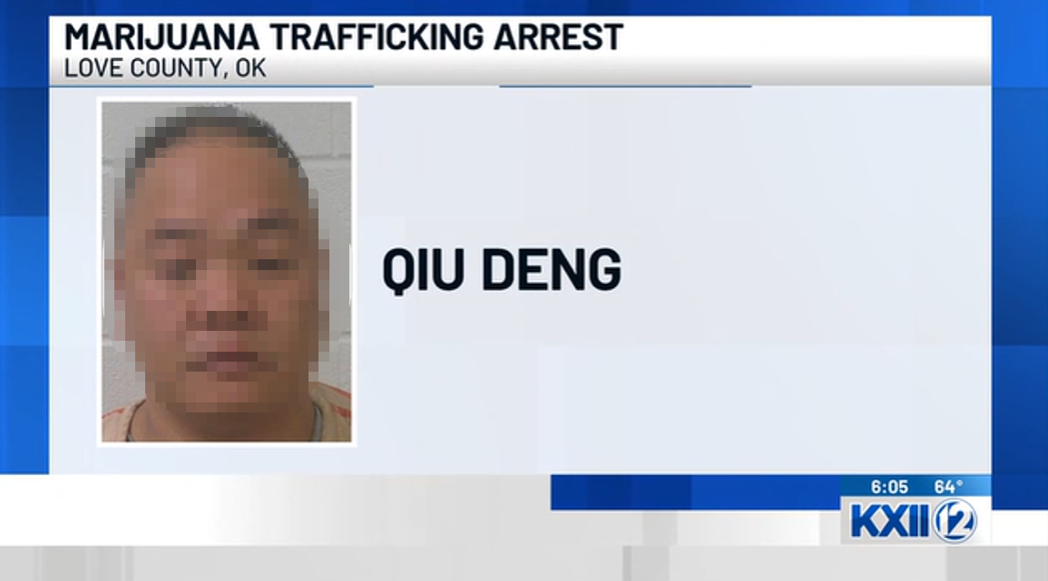 与此同时,在洛夫县(Love County),警方也通报一起大麻贩运案件。50岁的布兰查德(Blanchard)居民、华裔男子邓邱(Qiu Deng,音译)于2月11日被关押进洛夫县监狱,被控一项大麻贩运重罪。