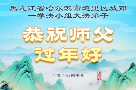 黑龙江省炳尔滨市道里区城郊一学法小组法轮功学员祝李大师过年好!