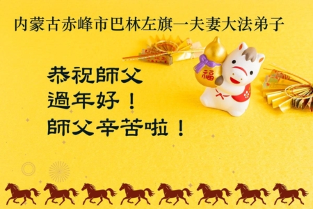 他们写道:“尊敬的师尊好,师尊辛苦了。又一个中国新年即将开启了,在这新年伊始,弟子全家祈愿伟大慈悲的恩师过年好,恭祝恩师新年快乐!我们想念师尊,无比感恩师尊日日月月、年年岁岁为我们操劳付出,是师尊的巨大承受和时刻的保护,弟子全家才有今天。在这纷乱的环境中,弟子更加要坚持背法添正念,以法为师,紧跟师尊正法进程,不受眼前变幻多端的人类形势带动,坚持圆容海内外大法修炼整体,正念理性地助师救众生。”