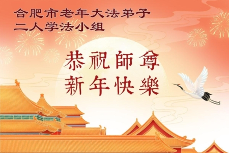 安徽合肥市一老年学法小组二位法轮功学员祝李大师新年好!