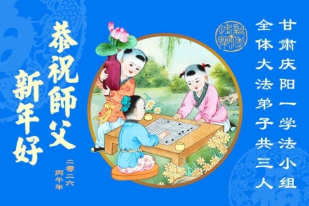 甘肃省庆阳一学法小组全体法轮功学员共三人恭祝李大师新年好!