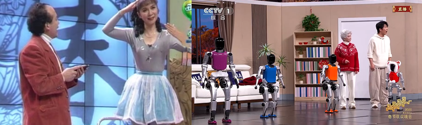 小品上,蔡明从扮演机器人到有了多个机器人孙子,还有替身