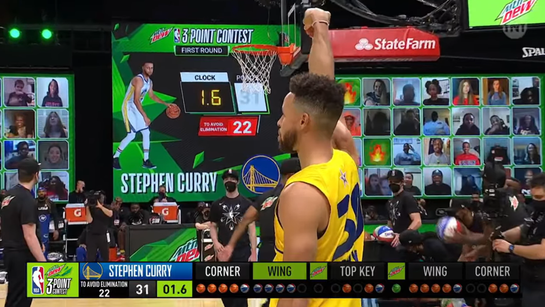7、2021年是库里三分大赛的巅峰,他在首轮投出的31分至今没有人能打破,决赛他以1分的优势险胜康利。