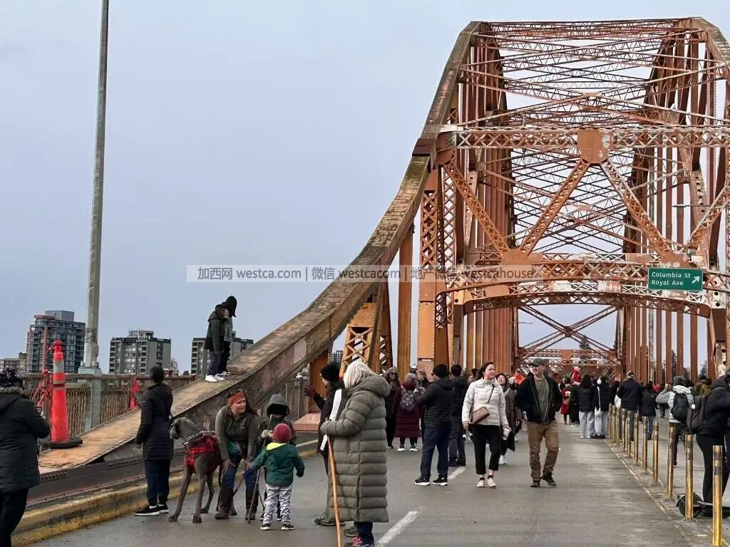 这个为大温人熟悉、连接素里市和新西敏市的橙色桥梁在服役89年后,已于周六随着新建四车道河景大桥(Stal??w?as?m)的正式通车而永久关闭机动车车通行。