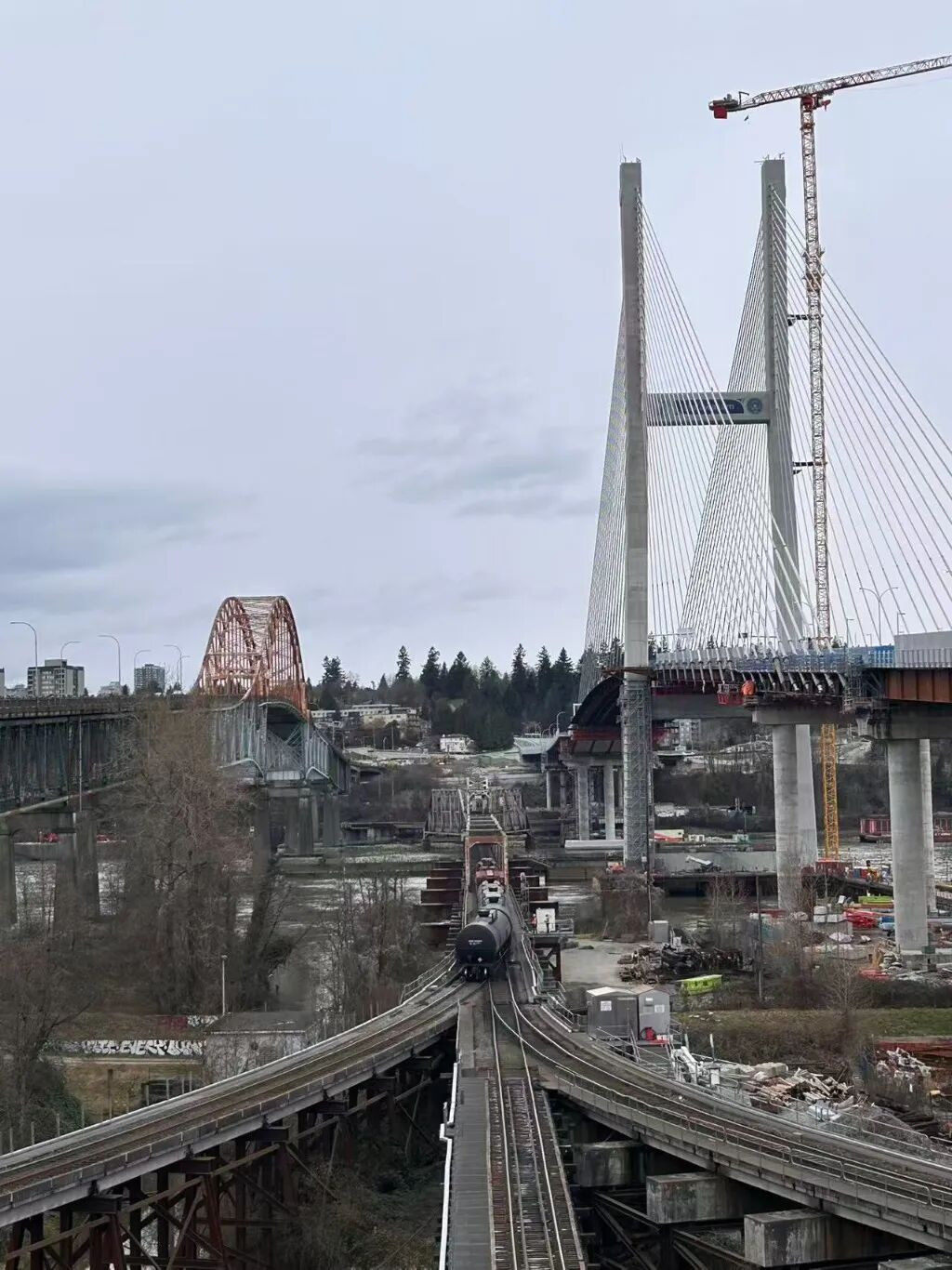 去年12月24日,新建的河景大桥率先开放四条车道中的一条,以兑现BC省政府承诺在圣诞节前启用帕图洛大桥替代桥梁的承诺。