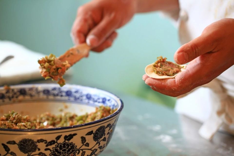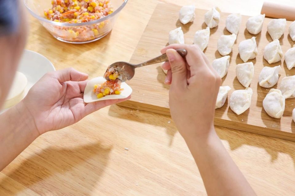 饺子馅别彻底剁成泥,而是适当留一些丁状的有点嚼劲的颗粒,能让你咀嚼、拖慢吃饺子速度,也可以提升口感的层次。