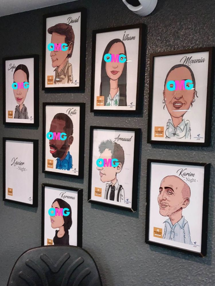 她话音一落,我跟她眼神交流。她补一句:我负责处理早班“日常”,你可以跟我讲。于是我把事情又复述一遍,站在酒店的立场上,提出三点意见:A. 做为一家知名酒店,把一位情绪不稳定且带有“暴力倾向”的员工安排“独自”值夜班,是极大的“安全隐患”。B. 相信你们已经看过前台昨夜的录影带,请保留原始记录,以备查询,因为我不懂法语。C. 为了自身安全,我决定马上退房。我又把拍下的墙上的“图画”给她看,表示:任何酒店开放公共空间并迎客人拍照,为其宣传和扩大影响。我拍下的是一件你们“公开展示的艺术品”。