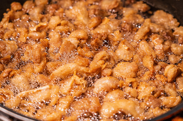 肥肉回家,不是直接下锅炒菜,而是切成方块,小火慢慢熬。锅里滋啦滋啦,油脂一点点析出,香味从厨房蔓延整个走道(那个时候我家住的集体公寓,一家一间或者两间那种)。等到肥肉被炼成金黄酥脆的小块,那就是我们最期待的时刻,油渣出锅。