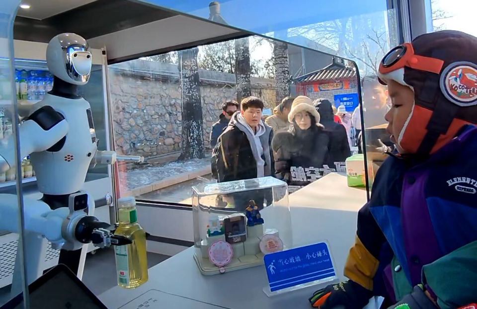 最近一段时间,我们发现颐和园内设置有一处机器人零售店,引发了大量游客围观。从测试情况来看,从支付完毕到交付商品,中间机器人的取货环节耗费了30秒,预计是普通售货机的5-10倍。