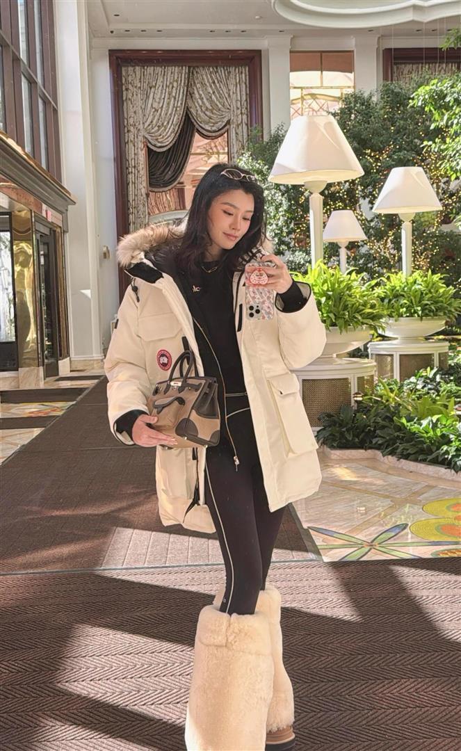 脚上蹬着万年爱的白色毛毛雪地靴,手里是29万的爱马仕,脖子上还挂着一条金灿灿的老铺黄金项链。