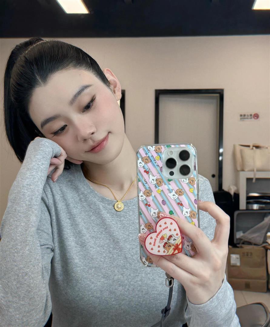 她扎着高马尾,系了个白色的蝴蝶结,新做的美甲衬得手指修长白皙。