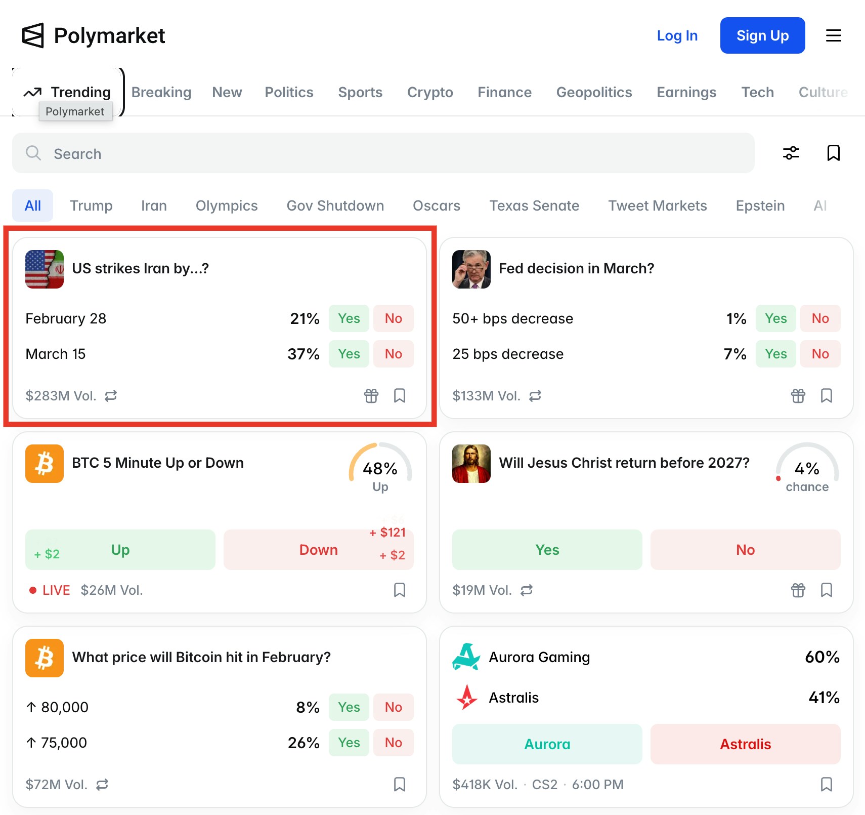 相较之下,Polymarket以区块链为基础设施,结算以USDC稳定币进行,不受美国监管当局规管。尽管在2022年与美国商品期货交易委员会和解后,Polymarket正式限制美国用户,不过由于其以加密货币为交易基础的做法,其交易其实难以受到地域限制。而且,由于缺乏政府规管,任何议题也可以登上其预测市场,因此像美国会否攻击伊朗之类的战争相关赌盘在Polymarket上就非常活跃。