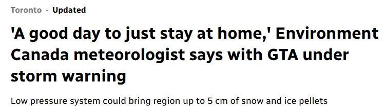 他周三接受 CBC 多伦多采访时说:“路况可能会很快恶化。不论下的是哪种形式的降水,都会非常危险。”