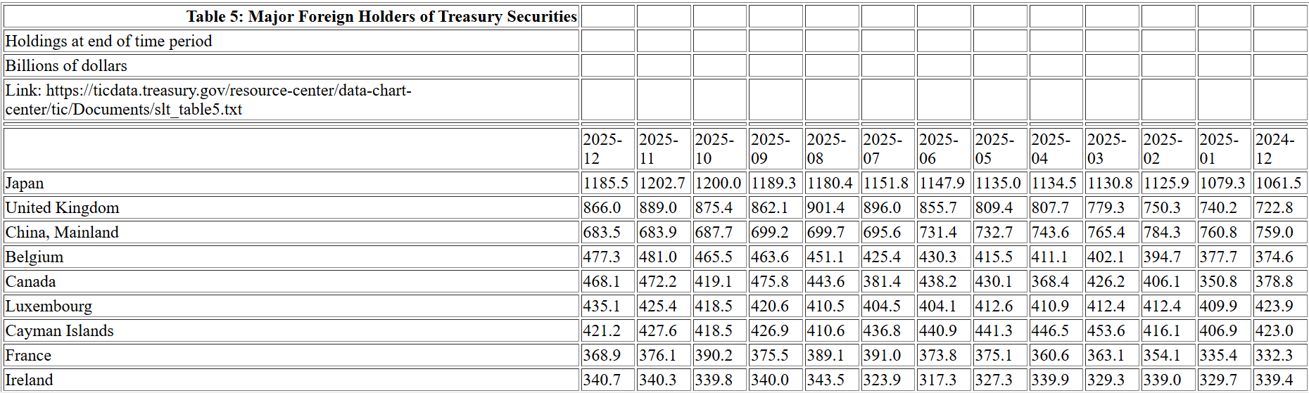 12月单月方面,外国投资者持有的美国国债减少884亿美元,降至9.27万亿美元,为10月以来的最低水平。作为美国政府债务最大海外持有者,日本持仓减少172亿美元至1.19万亿美元;英国持仓减少230亿美元至8660亿美元;中国大陆持仓减少4亿美元。