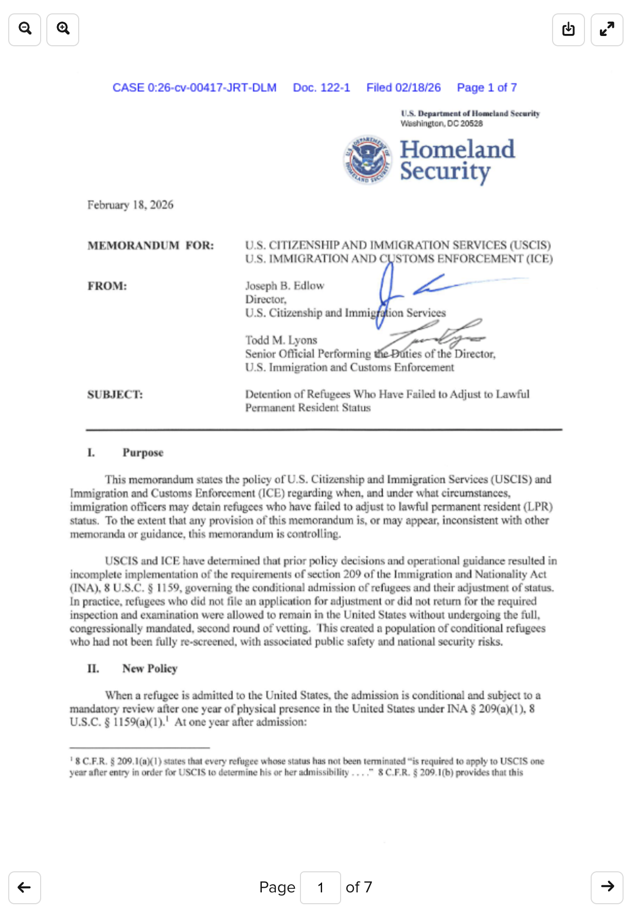 据2月18日报道,川普政府近日出台新举措,授权移民与海关执法局(ICE)在难民入境满一年未取得绿卡的情况下重新收押并进行“强制复审”。据2月18日提交联邦法院的政府备忘录,政府将“未及时调整身份”由以往的非拘押理由一举反转为可被羁押的依据。