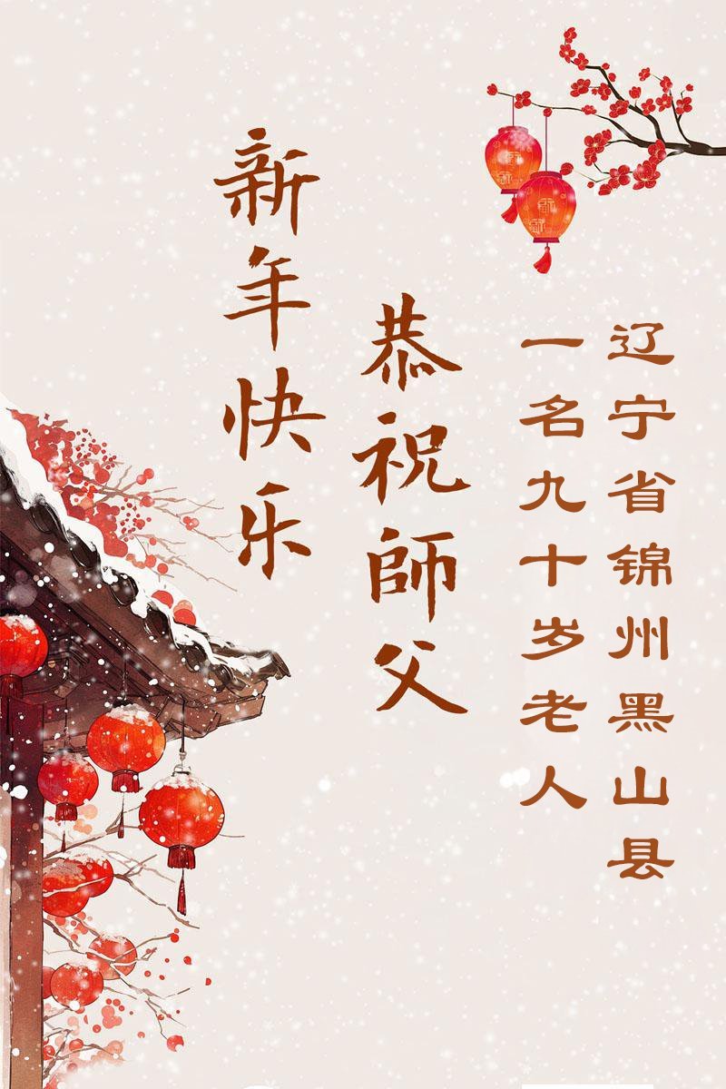 辽宁省锦州市黑山县一名90岁老人恭祝李大师新年快乐