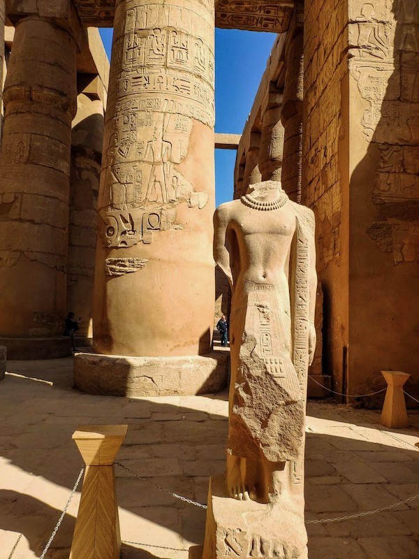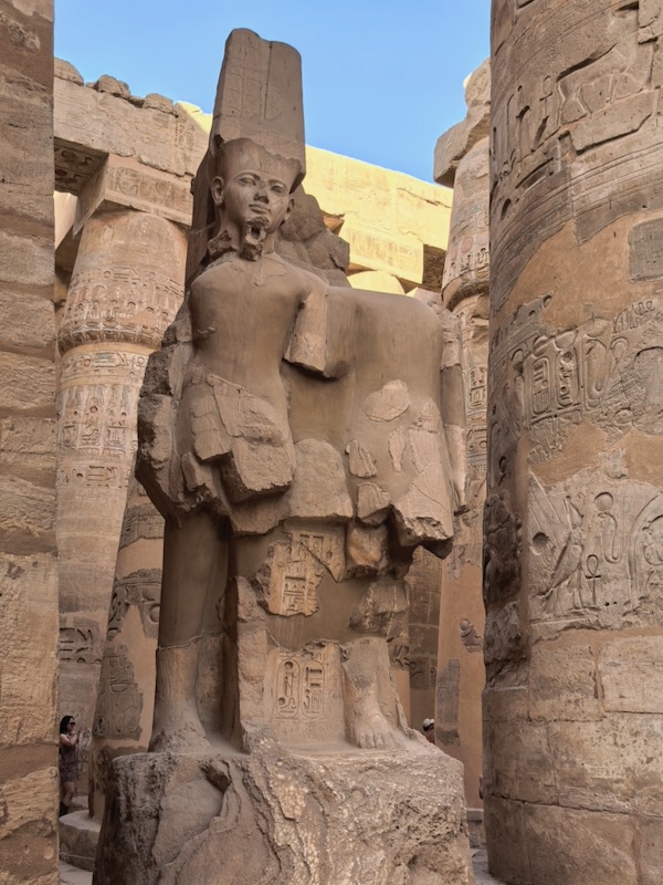 多柱厅曾经布满雕像,如今只剩3座残像。王名圈显示这是塞提二世雕像。