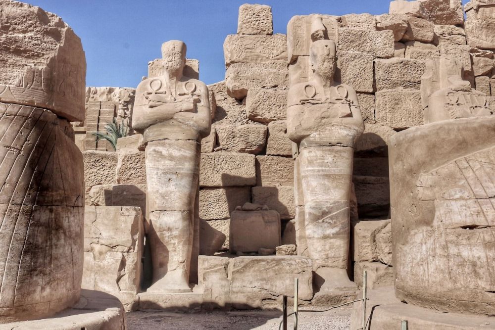 第七塔门前的图特摩斯三世和奥西里斯雕像
