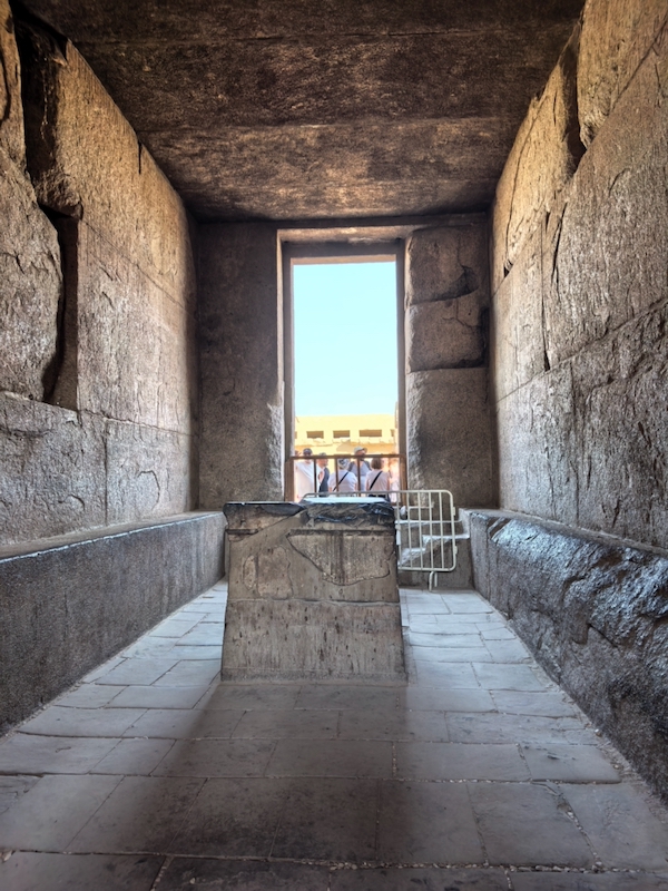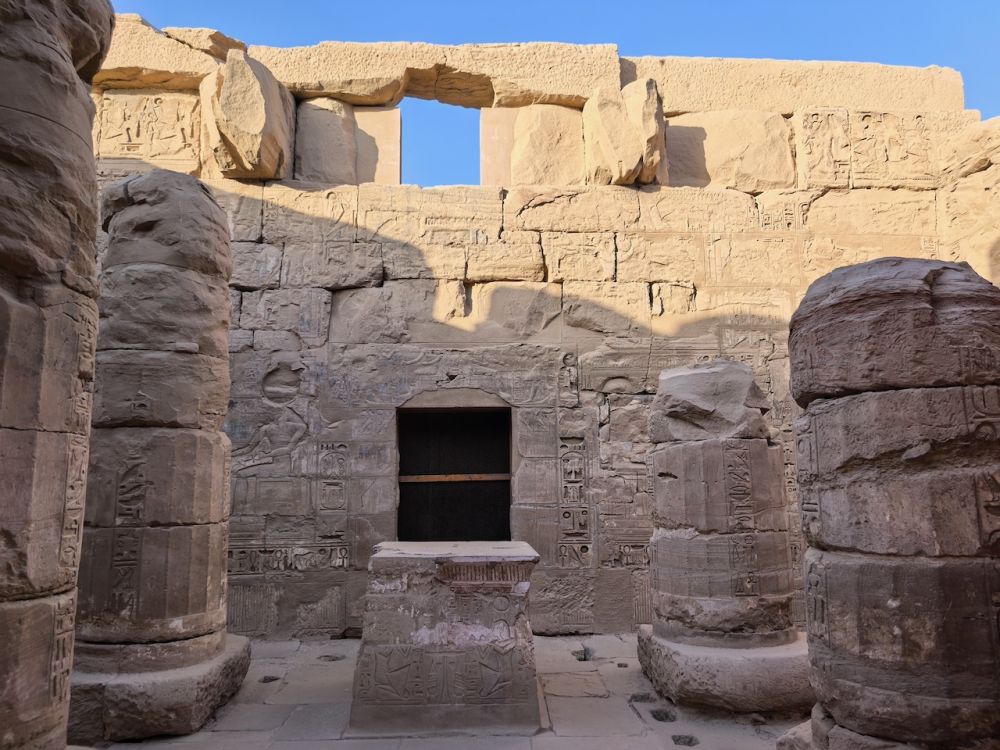 这里是神庙的中心,原是图特摩斯三世建造的圣船祠堂,内部保存有一座太阳船的花岗岩基座