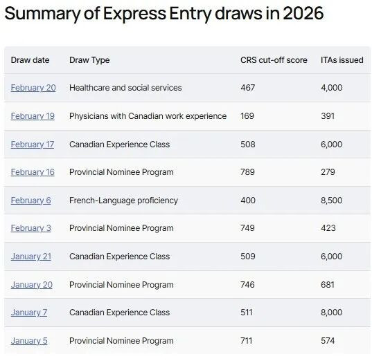截至目前,2026年IRCC已经通过以下类型的抽签发出了34,848份申请邀请。