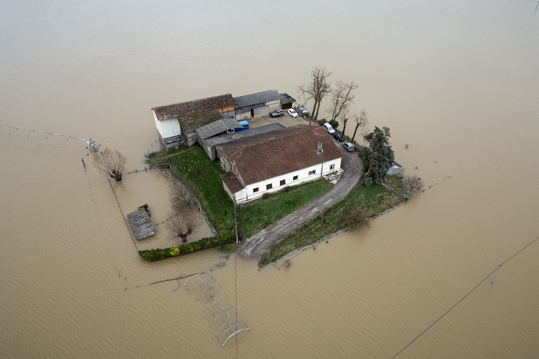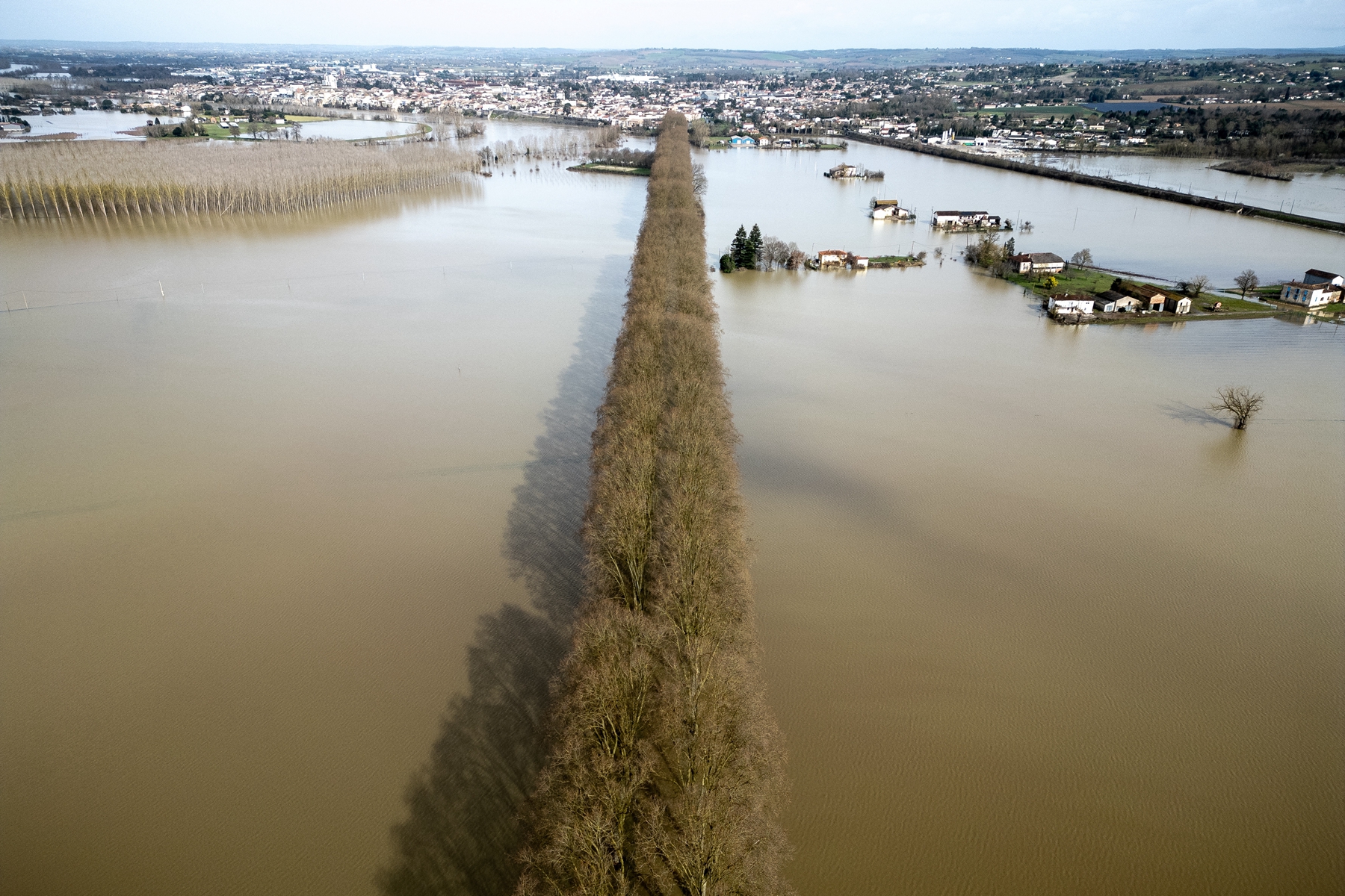 2026年2月20日,受连续降雨及风暴“尼尔斯”(Nils)和“佩德罗”(Pedro)的叠加影响,法国西部的加龙河(Garonne River)流域发生洪水。(Pat Batard/Hans Lucas/AFP via Getty Images)